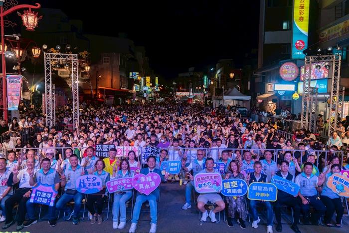 新竹市政府攜手竹蓮寺及竹蓮文化基金會盛大舉辦2025七夕成年禮活動,今(29)日晚間於竹蓮寺舉行「星空演唱會」,邀請玖壹壹、怕胖團、楊淨宇、HotStar等知名歌手與樂團輪番演出,帶來多元曲風與精采演出,代理市長邱臣遠與竹蓮寺主委許修睿也一同到場,與市民共度浪漫七夕情人節夜晚。