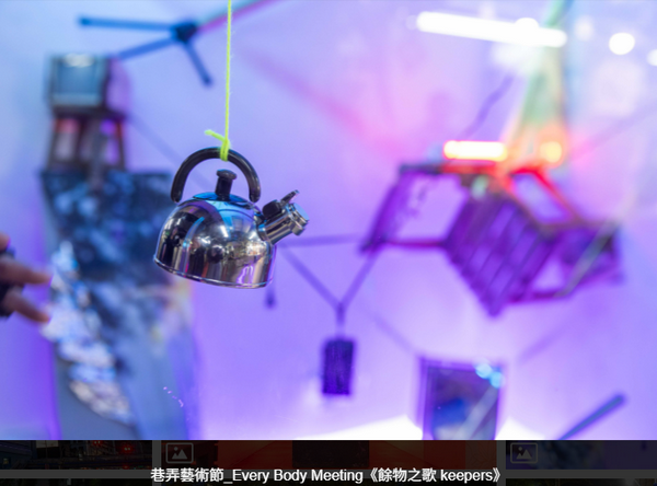 巷弄藝術節展出形式多元,作品涵蓋聲音、裝置、平面與影像,帶來豐富感官體驗,Every Body Meeting 帶來全新沉浸式現地表演《餘物之歌》,以水源市場及周邊場域為舞台,結合表演與裝置,邀請觀眾自由進出,體驗藝術與日常的交織。