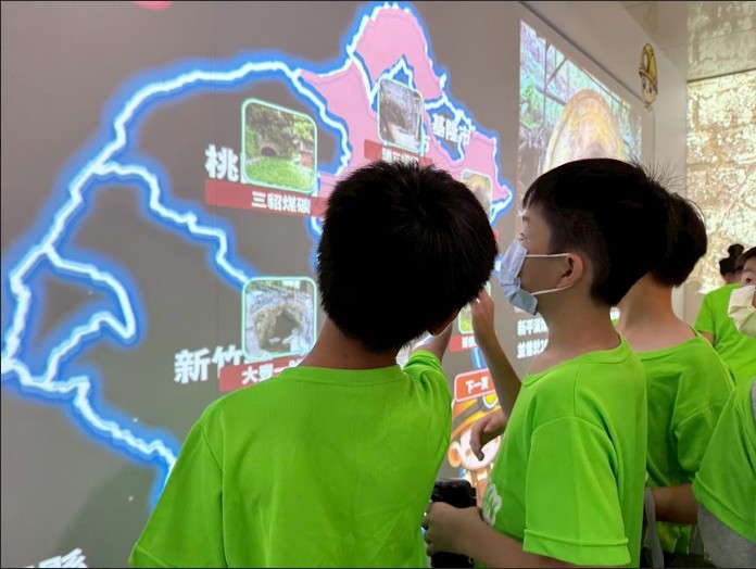 猴硐礦工文史館二樓的數位互動牆,讓學生互動了解煤礦小知識