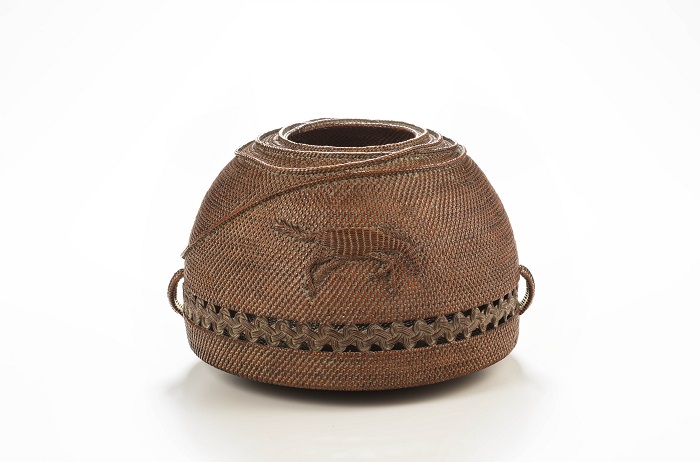 張憲平藝師,出身於苗栗竹南的編織世家,自創仿古生漆髹塗技法,為臺灣竹籐編工藝開闢新路徑,在戰後工藝發展史上具有重要地位。其作品融合臺灣閩、客、原住民族的編作特色與技法,也吸取中國、日本、東南亞的文化元素與圖紋,更善於運用竹與籐的結合,展現豐富編織層次與變化,不斷創新、獨樹一格風格,展現了傳統工藝的無限可能。