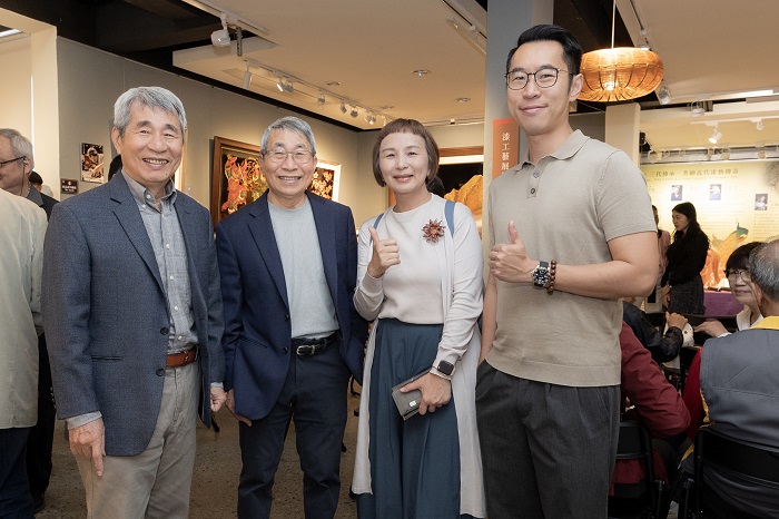 王賢民(左1)、王賢志藝師(左2)與王清霜家族第三代王峻偉(右)是臺灣最具代表性的漆藝世家