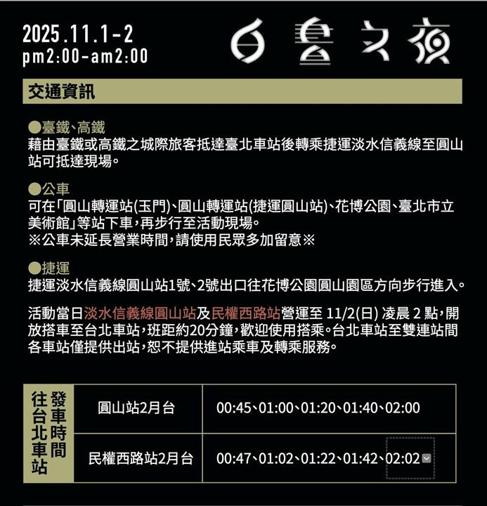 2025 臺北白晝之夜即將於 11 月 1 日下午 2 點至 11 月 2 日凌晨&nbs