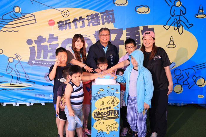 初夏最HOT活動!新竹市政府主辦的融合運動與觀光的「新竹港南遊GO好動生活節」10日至11日於新竹市港南運河公園熱力開跑!教育處長林立生今(9)日代表代理市長邱臣遠到場宣布生活節正式啟動,並和小朋友一