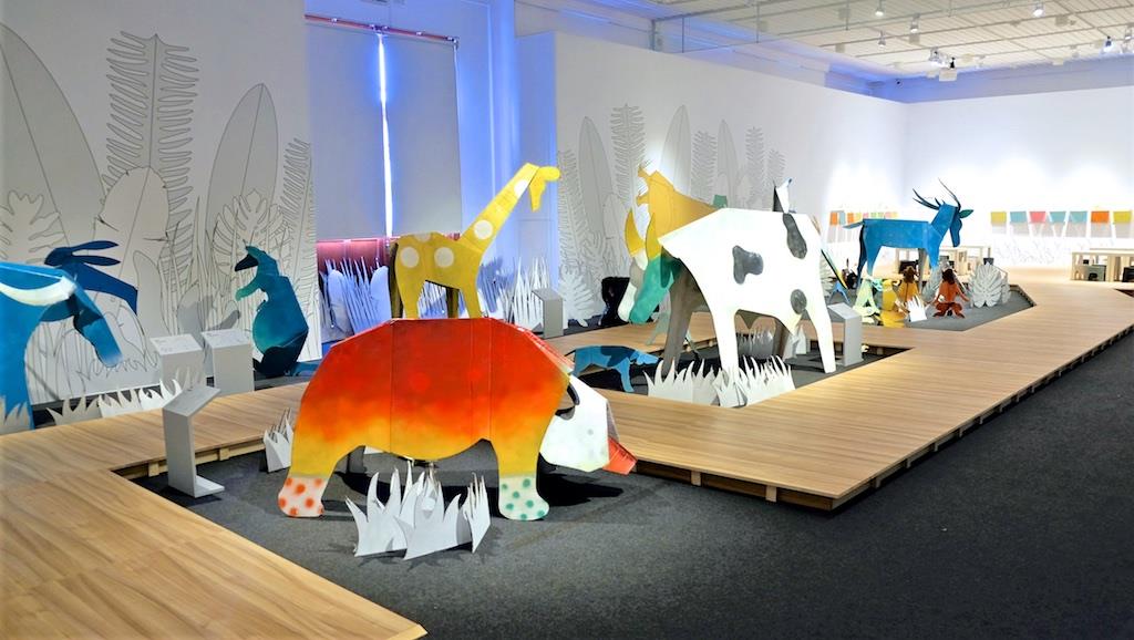 美術館二樓以立體雕塑形式呈現李澤藩設計的動物摺紙