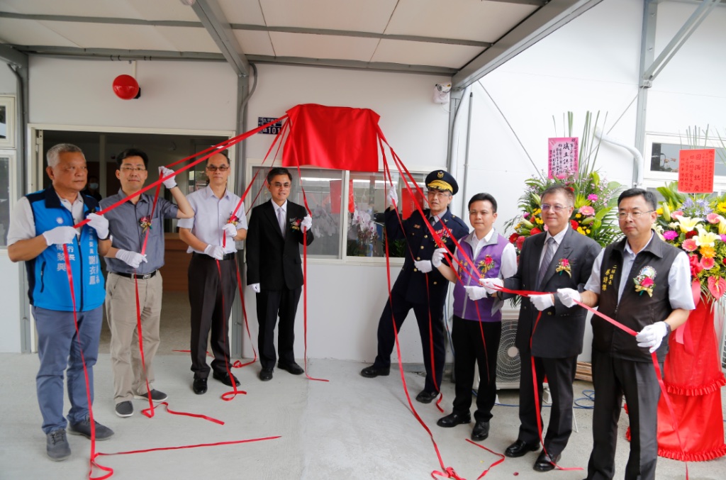 ▲中科管理局局長許茂新(左四)、保二總隊長劉章遠(右四)、彰化縣副縣長洪榮章(右三)、彰化縣警察局副局長賴宏豐(左三)、科學園區同業公會處長賴明志(左二)、保二警友會中區主任劉嘉彬(右二)、謝衣鳳立委辦公室執行長傅黎興(左一)、二林鎮長蔡詩傑(右一)