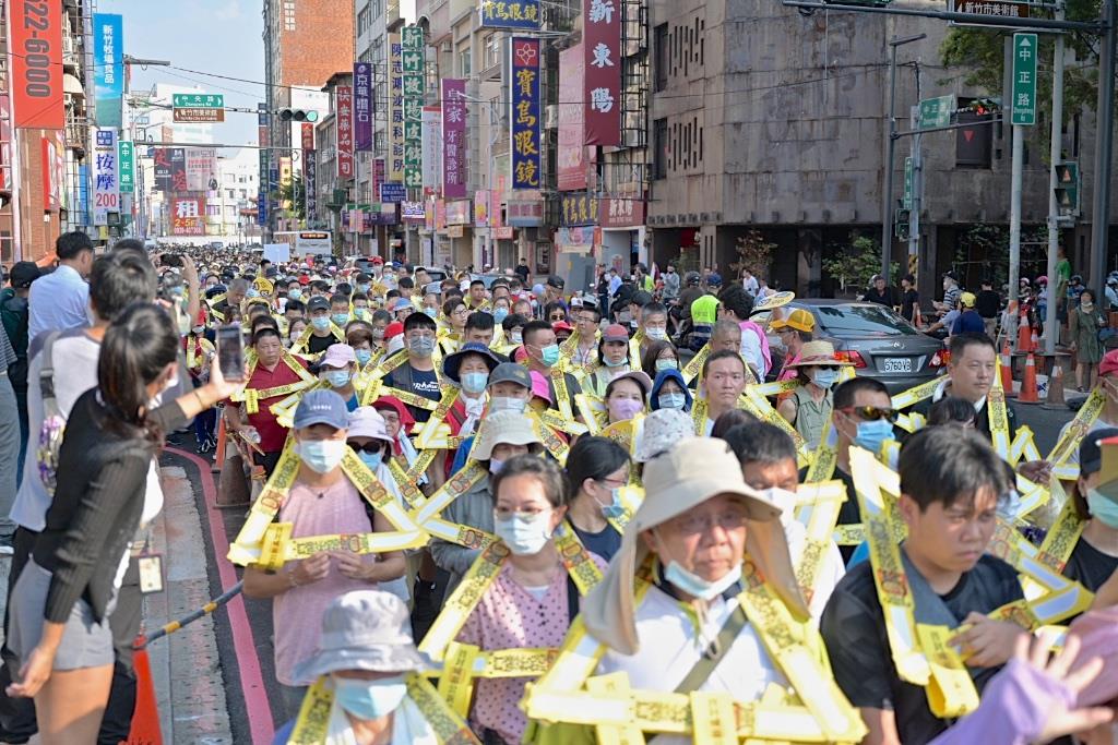 「竹塹中元城隍祭」今(19)日舉行「脫枷消業植福法會」,吸引超過兩千名信眾參與,加上隨行民眾,近萬人隊伍場面盛大,今年為新竹市政府與新竹都城隍廟第六度合作,隊伍從城隍廟出發,林智堅市長表示,「夯枷」、「脫枷」為新竹都城隍廟沿襲百餘年的古禮,也是新竹市重要的無形文化資產,感謝民眾熱情作夥逗陣,一同傳承百年傳統文化。