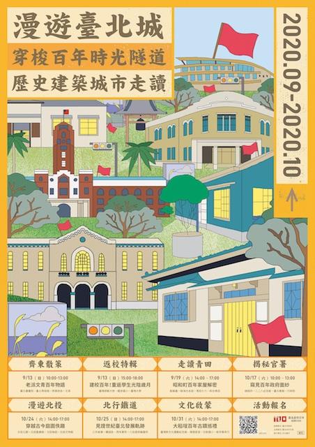 歷史建築與文化資產的保存及活化,可視為乘載過去及未來的重要體現;2020年適逢臺北設市一百週年,本局結合臺北古蹟日推出7條大師走讀路線,辦理史蹟導覽活動及在老房子文化運動標的進行文化互動體驗,藉由活潑、創意的文資走讀,讓民眾認識臺北市在文化資產保存再利用之成果,並邀請民眾進一步了解巷弄中文化資產的故事與其建築藝術價值。