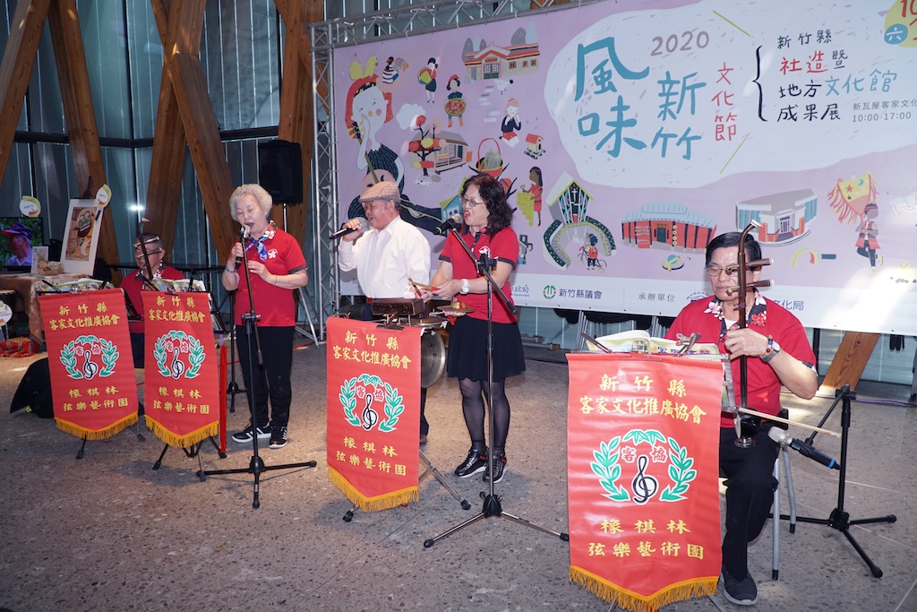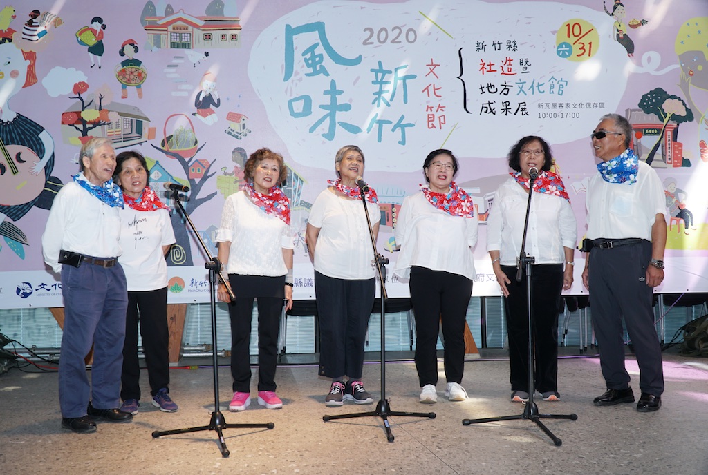 26日記者會上二重社區的客家文化推廣協會帶來山歌說唱,歌詞描述竹東灌溉過程,成員更是不簡單,有2位劉源治、彭鈺雯曾榮獲「山歌王」殊榮,還有愛鄰社區關懷協會「不老合唱團」,多位55歲以上長輩精彩合唱,展顯出竹縣無窮社造能量,本周六芎林張家客家方口獅、印尼傳統舞蹈、五峰原少樂團也將帶來精采表演。