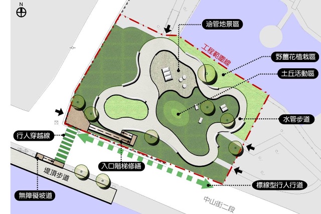 交旅處長游志祥表示,為擴大內灣旅遊深度,期盼提升地區觀光發展;並建構友善旅遊環境,包含友善步道及指標系統建構,將地區環境特色改造,過去內灣風景區偏重於產業歷史、鐵路及漫畫等特色營造,本案也將內灣最具有特色代表的野薑花公園活化,公園基地位於自來水取水口處,除配合現地環境生態栽植野薑花外,將運用混凝土管作為設計素材,可坐可玩設施彷如滑道及平衡木的地景設施,形成強烈空間意象、有趣視覺效果並連結環境紋理,給予遊客或縣民一個優質親子休憩空間。