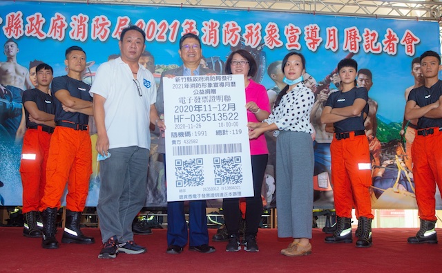 縣長楊文科表示,新竹縣消防局宣導月曆每年主角都會重新徵選,展現本縣消防員除掌握專業消防技能訓練,同時擁有好體格,以維護縣民生命財產安全,讓民眾對消防局團隊更增信賴感,活動兌換發票也將全數捐贈予本縣弱勢團體或機構,增添一份善心公益。