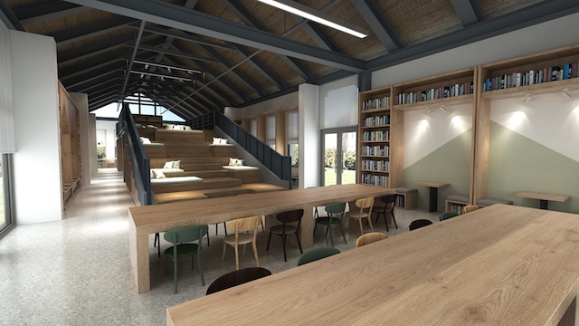 而原先樓中樓區空間則改以落地式大階梯座位區,當民眾坐在該區,映入眼簾的就是落地窗外的北大公園草地,整個空間視野更加開闊、明亮,盼提供更舒適的閱覽環境,吸引更多人駐留。