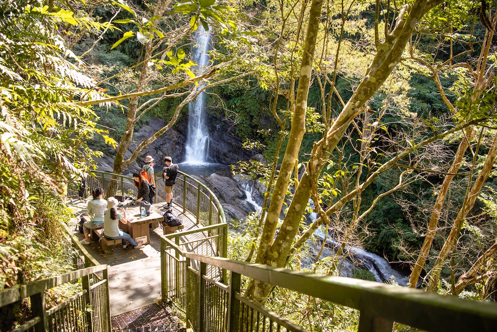 山風二號橋下方的木棧觀瀑平台,是欣賞瀑布全景的最佳視野。