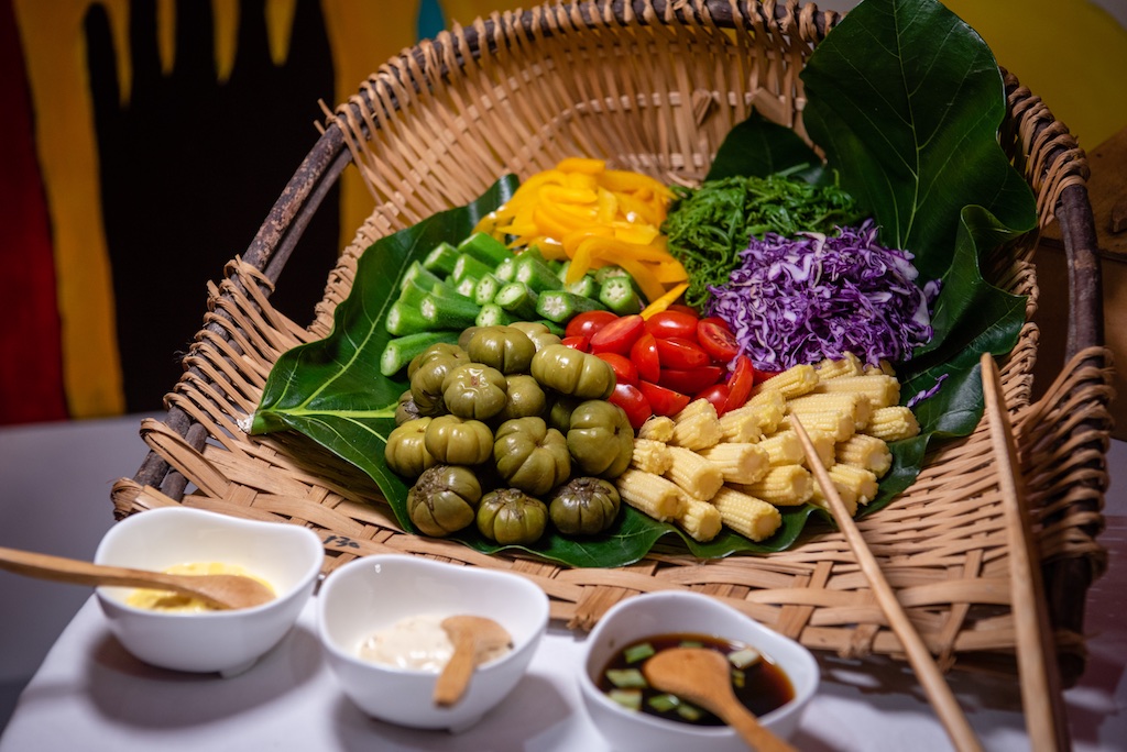織羅部落在地野菜五彩繽紛上桌,佐以自製沾醬,每一口都是健康自然的食材原味。