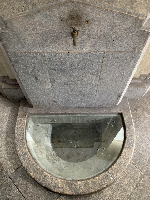 日本時代為鄉下人光腳進城後,進公會堂之前,要求洗腳之用,目前還保留左右各一洗腳池。