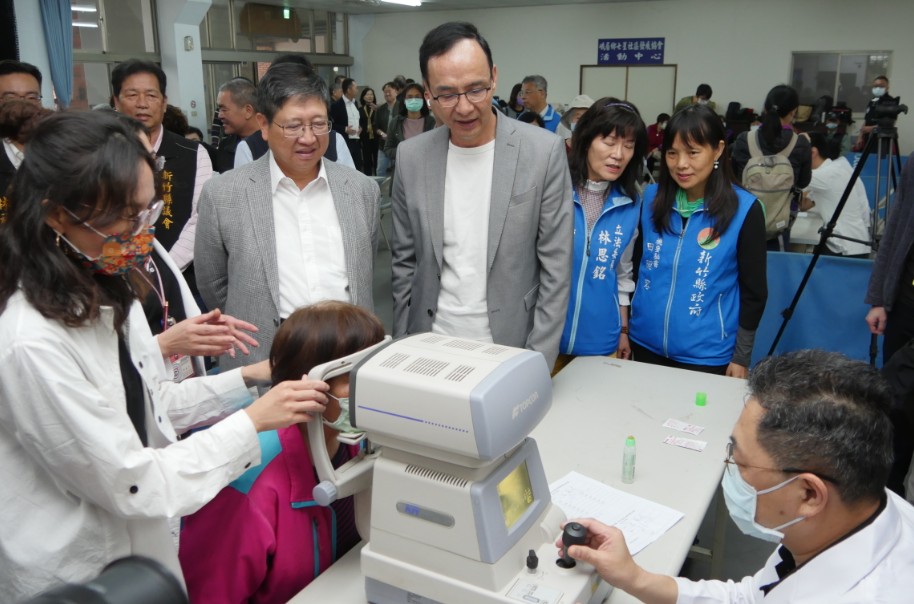 銀光未來創新協會、台灣杜絕惡視力協會及新竹縣、新竹市驗光師公會等團體與新竹縣峨眉鄉公所舉辦「銀光敬老眼鏡偏鄉傳愛到新竹縣峨眉鄉」,今(8日) 前新北市長、銀光協會創辦人朱立倫與新竹縣長楊文科前往峨眉鄉老人文康中心關心長者現場檢查的狀況,約有峨眉鄉200位65歲以上的長輩參與,現場12位驗光師為他們免費配眼鏡外,衛生所也安排衛教課程,期盼讓長輩們眼睛看的清楚,生活上更能自立、也更安全。