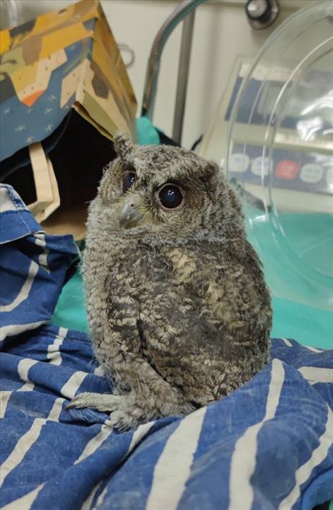 今日早上香山派出所通報民眾在景觀大道下運動場撿到領角鴞,市府保育人員初步評估動物無明顯外傷,判斷為幼鳥離巢練飛落地,經送往新竹市立動物園由獸醫檢查無受傷,已由市府原地野放。