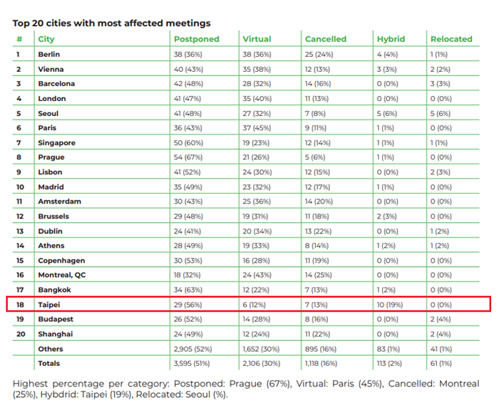 國際會議協會(ICCA)分析報告:_2020年「受疫情影響會議數」排名前20高之城市(_ICCA_Market_Intelligence_on_COVID-19_Affected_Meetings_in_2020,_February_2021)