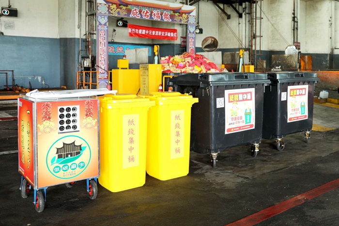 中元節將至,新竹市環保局力推「中元祭祀零排放」,推廣兩大環境友善祭祀方式,減低空氣污染,在防疫期間更可讓民眾避免群聚。第一透過「紙錢集中燒」,將紙錢交予新竹市垃圾焚化廠集中煉化,市府更免費借用紙錢集中桶及環保鞭炮機提供寺廟;第二結合7處公益團體推動「以功代金」,民眾線上捐款做功德取代焚燒實體金紙,還可獲得限量環保祭祀袋。