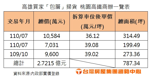 ▲高雄買家極為看好桃園高鐵特定區的發展,大手筆砸下2.72億現金「包層」掃貨。