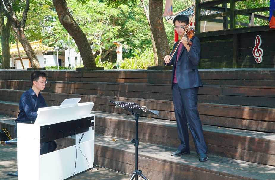 《夏夜‧三線情》活動也邀請到鄧雨賢的第四代曾孫趙奕喬(右)共同參與演奏