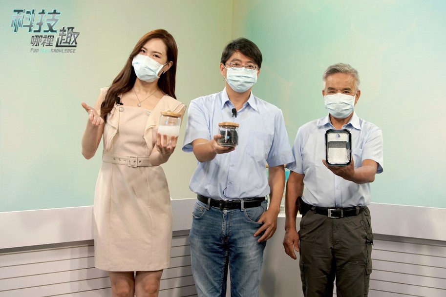 ▲工研院自製的網路節目《科技哪裡趣》10/1中午12點正式首映,左起主持人朱楚文、台灣水泥研究室經理章興國、工研院綠能所副組長廖啟雯。