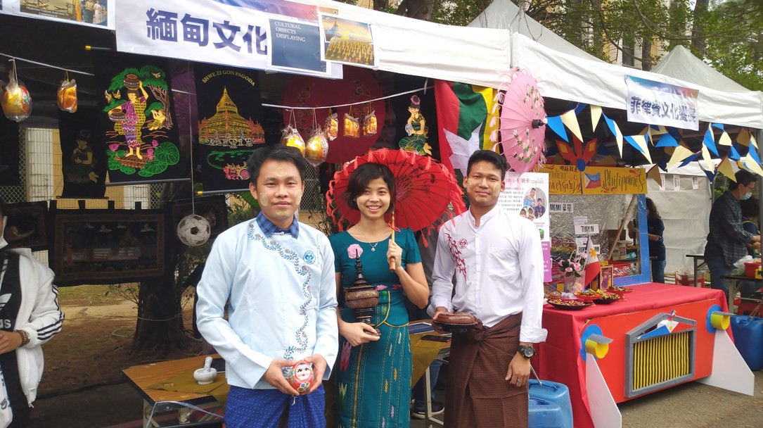 國際生眾多的明新科大校慶日舉辦「國際嘉年華」,各國學生擺攤展示傳統服裝及美食,緬甸學生著傳統服飾及臉上擦上緬甸國民美容品「特納卡」介紹緬甸文化