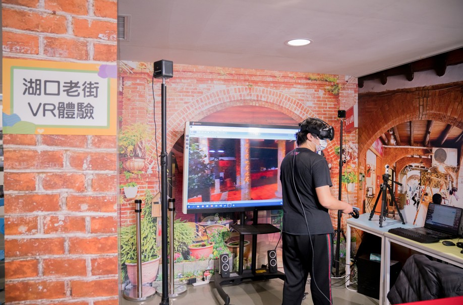 明新科大USR成果展,以VR技術現場體驗虛擬湖口老街全景,也可走入三元宮內線上參拜