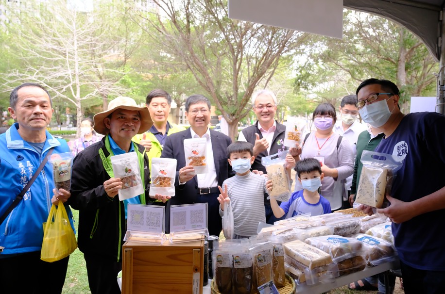 本次參與的攤位中,其中北埔鄉南埔、寶山鄉新城、新埔鎮旱坑社區也榮獲農委會「金牌農村」肯定,現場也擺出社區所推出桶柑餅、洛神花果醬農產加工品、黑糖爆漿包、柿染藝品等商品,縣長楊文科等人也紛紛掏出錢包購買,以新臺幣實際力量支持農再社區!