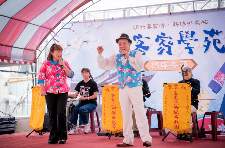 新竹縣府與明新科大合作設立「新竹客家學苑」,揭牌典禮有霓雲社客家三腳戲有精彩客家樂曲與俚語,讓活動增添濃濃客家味