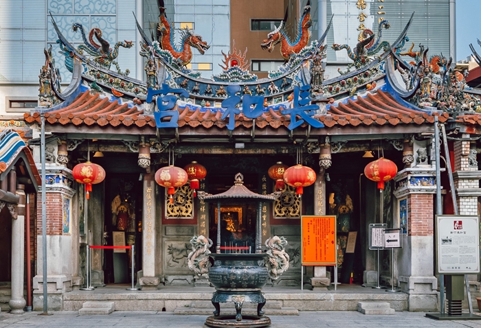 位在北門街的長和宮,左側增設水仙宮,形成全臺罕見雙軸平行並列的「雙宮奇景」。長和宮興建於西元1742年,又稱「外媽祖廟」,早年貿易往來興盛,許多郊商將長和宮當作議事地點,取名「長和」有長久合作、和平共處之意,廟內保留大量古文物和匾額,包含聖母來台乘座的鑾椅、鳳冠霞被、三寸金蓮履,繡花荷包、錦繡袍裙等,極為珍貴。