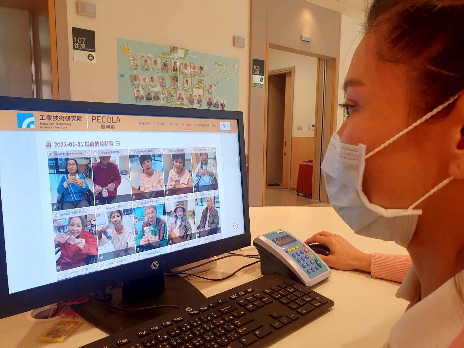 工研院與橫溪恩主公護理之家合作PECOLA AI感知照顧系統,「聰明拍」為三大功能之一,透過AI人工智慧影像辨識技術,照護人員僅需拍攝長者照片匯入電腦雲端影像系統,即可依人臉辨識自動分類歸檔,並提供家屬線上即時瀏覽。