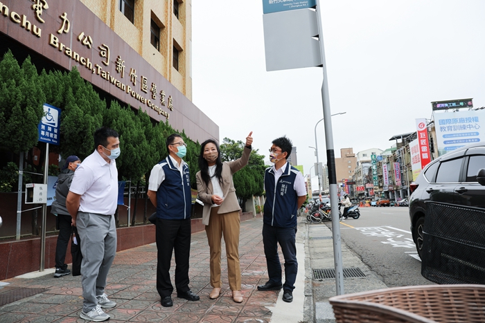 沈慧虹表示,新竹市政府致力推動步行城市與建置步行環境,陸續完成新竹火車站周邊,如站前廣場、人行環境改善串連及騎樓順平。此次再針對車站旁的中華路二段(中正路至東門街)兩側人行步道改善,該處因人行道嚴重破損、無障礙斜坡不符規定,且近中正路中華路、東門街等轉角處無實體人行道,造成人車爭道。