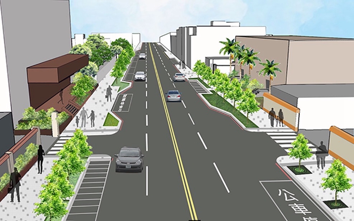工務處表示,此次工程將補足人行道斷點,改善、新增人行鋪面、行穿線退縮遠離路口、路口人行道擴大、號誌電纜下地及設置公車彎、停車彎、裝卸貨車用車位等,建置安全、友善、舒適人行環境。