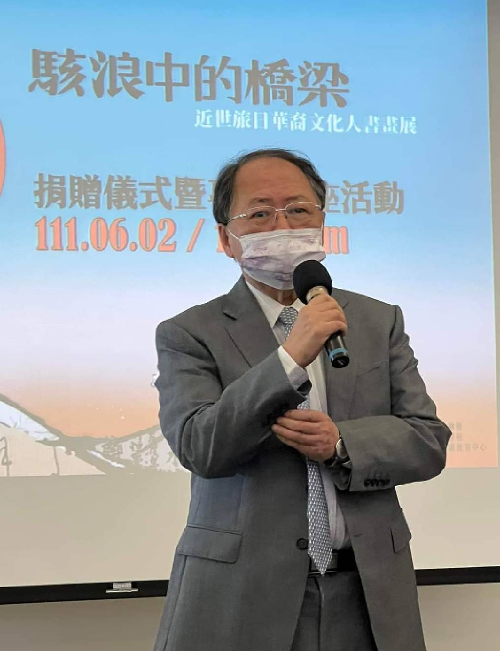 這次以日本與台灣有關的文物為主,名稱是「駭浪中的橋樑一近世日華裔文化人書畫展」為捐贈主題!