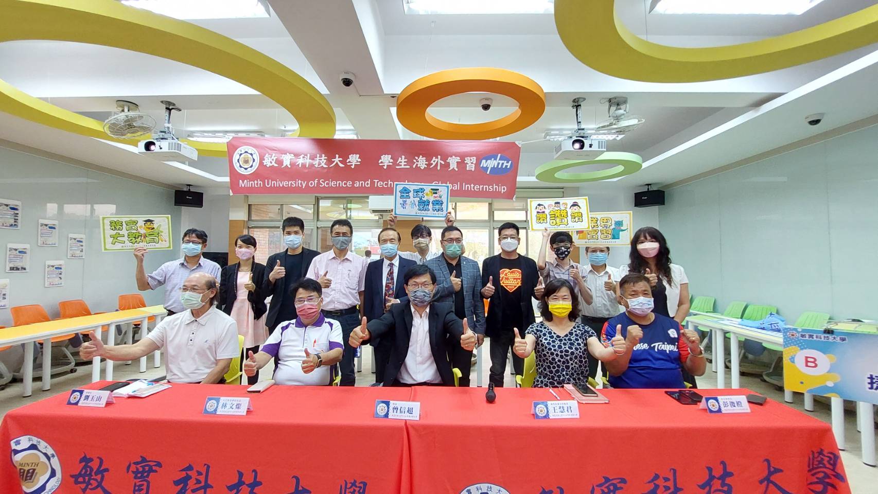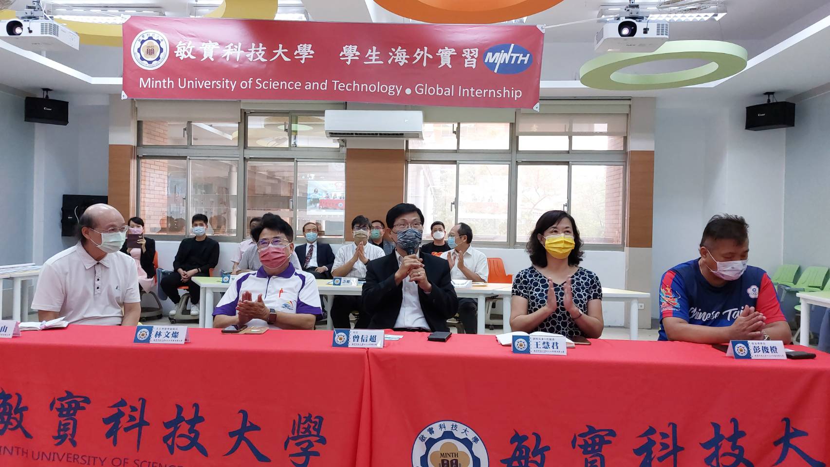 曾信超校長表示:人工智慧技能的養成除了學理之外,更重要是能夠學得與企業同步發展的實務技能,敏實科大透過教學白皮書的設計:由大一、二的見習以及專題製作到大四的全年實習,永續落實技職教育做中學、學中思,不斷精進永續教育理念。他特別感謝集團淳安電子的陳廣潮股東,因為認同秦董事長辦學理念,特別設置了潘寶嬋獎學金,支援此次跨國實習經費。基本上由於此獎學金,再加上同學們實習工讀收入,可以在大二的暑假,就完成一般科大學生很難想像的跨國工程的旅行研習。本日線上授旗典禮,除了表達對各個支援單位以及家長、同學的辛勤付出的感謝之外,敏實科大也特別表明,今後辦學與國際同步發展,培養智慧製造與智慧車輛優秀工程師的決心。