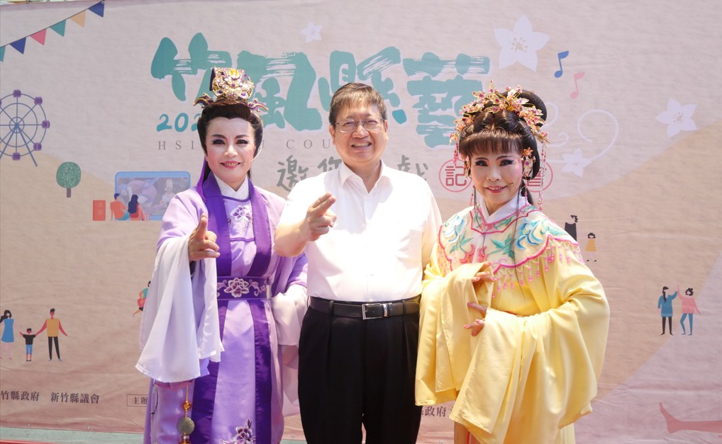 新竹縣政府文化局與財團法人新竹縣文化基金會舉辦「竹風縣藝」13鄉鎮市藝文活動,匯集客家大戲、歌仔戲、原民舞蹈、親子劇團及電影等,將在13鄉鎮市演出,今天(6日)舉辦記者會,由竹塹築夢歌劇團帶來折子戲為巡迴揭開序幕,現場新竹縣文化基金會董事長暨新竹縣長楊文科、前縣長林光華等來賓到場共襄盛舉,現場也邀請無家者與獨居長輩一同共賞歌仔戲曲,宣告巡迴演出正式開跑。