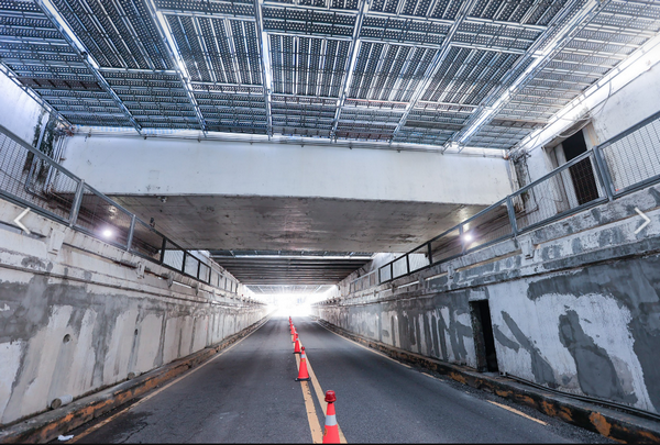 市府指出,竹市西大路地下道作為市區連接園區的重要道路,為改善整體防水、抽水設施、增加照明、補強結構、修補鋼筋外露、整合通廊景觀等,今年4月啟動西大地下道結構補強暨景觀改善工程,並重新設計出入口意象,提升安全性,預計10月底完工。
