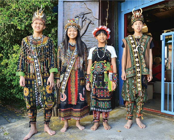 陳利友妹祖先屬於大王部落的領導家系,其傳統服飾技法繁複、色彩華麗,作品具東排灣地區的文化特色。琉璃珠則為其長子燒製。