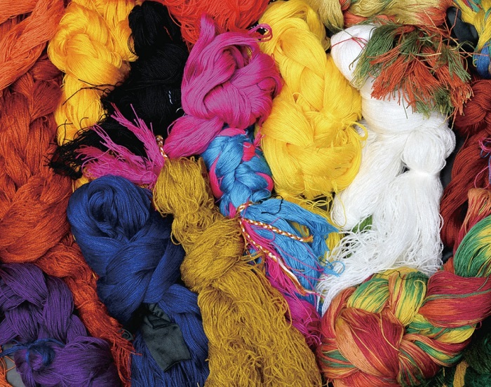 母親教導陳利友妹用繡線模擬「紅藜」多彩的配色效果