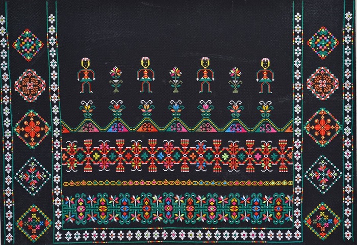 陳利友妹的十字繡法精湛,並善用高明度與彩度的對比色。