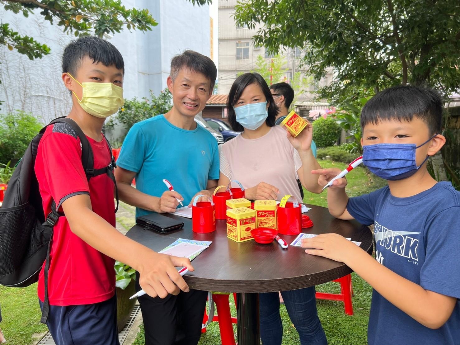 ▲新竹縣政府昨天在北埔姜阿新洋樓舉辦「愛戀獅山線,仲夏同樂會,封茶體驗活動」,吸引近25組情侶、親子參加,場面熱絡,一起寫下思念,貼上封條後,約定來日開封。