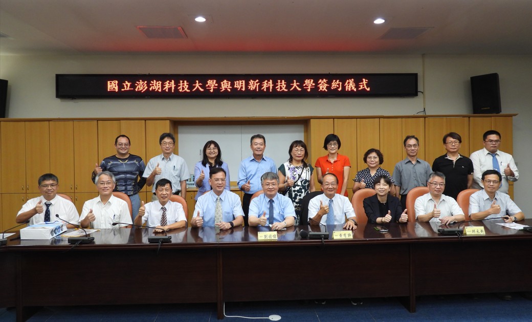 澎湖科大黃有評校長於雙方簽約儀式中表示,澎湖科大在96年即設立風力太陽能發電實習所,校內也設置一兼具教學、研究、實習與測試功能的風車公園(Wind Park),並建置「澎湖中小型風機國家標準測試場」,有相當多風力發電教學經驗。本次與明新科大簽訂「風力發電人才培育與技術發展」、「建置區域產業人才技術培育基地計畫」兩項合作意向書,兩校將可在風電及半導體領域互通有無、資源共享。澎湖科大發揮己長與明新科大建置共享風機測試場域與電能管理技術平台,導入產業、法人資源,也共同規劃風電專業課程、實作課程、教材等。另外與「半導體學院」簽訂「建置區域產業人才技術培育基地計畫」MOU,共享明新科大的封裝測試、真空技術、半導體元件整合等的教學實務訓練,開設學分學程等,提供在地學生及在職者進修半導體領域知識。與明新科大學學合作,共享資源發揮一加一大於二的效果,培育台灣半導體產業與風電產業護國群山的優質人才。