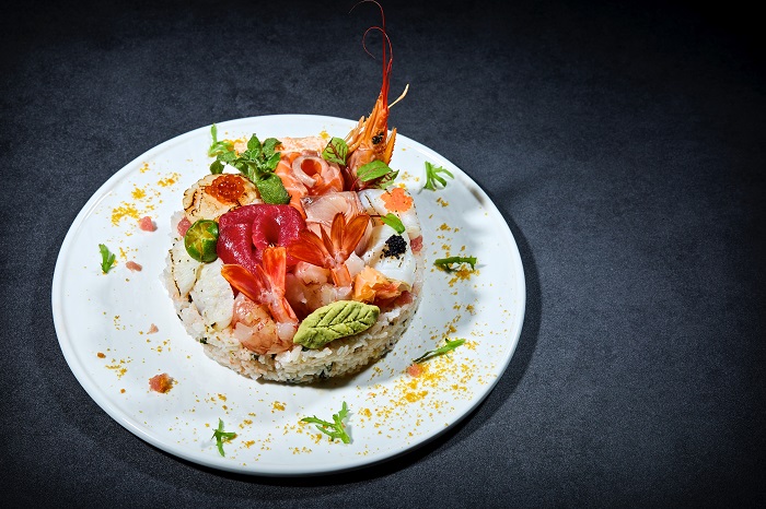 創意壽司蛋糕以當季頂級食材組成,色香味型俱全。