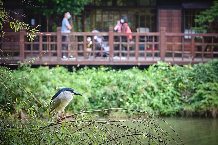 新竹公園有多樣化的生態,蓊鬱樹梢間可發現鷺鳥等野生鳥類的身影,還可看到松鼠進食呢!