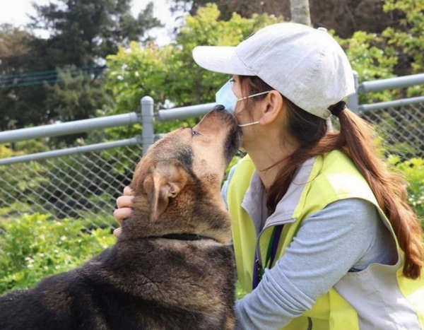 志工表示,經過持續一個月不間斷地陪伴,終於等到新飼主出現,高飛一開始躲在志工身後,經由志工們的安撫後,終於重返家庭的懷抱,志工們都非常開心高飛終於能重拾家庭溫暖。