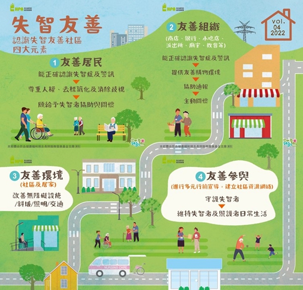 衛生局指出,失智症照顧應成為全民教育,破除對失智症的刻板印象,更要鼓勵各鄰里發展「失智友善社區」,包含友善居民、友善組織、友善環境及友善參與,讓大家成為共同照顧的力量,也呼籲長輩定期檢視自我健康情形。