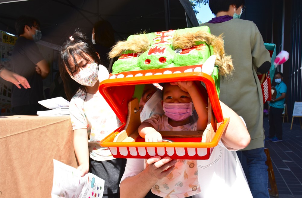 「2022風味新竹靚行式──新竹縣社區營造及地方文化館成果展」現場攤位讓民眾體驗操作方口獅