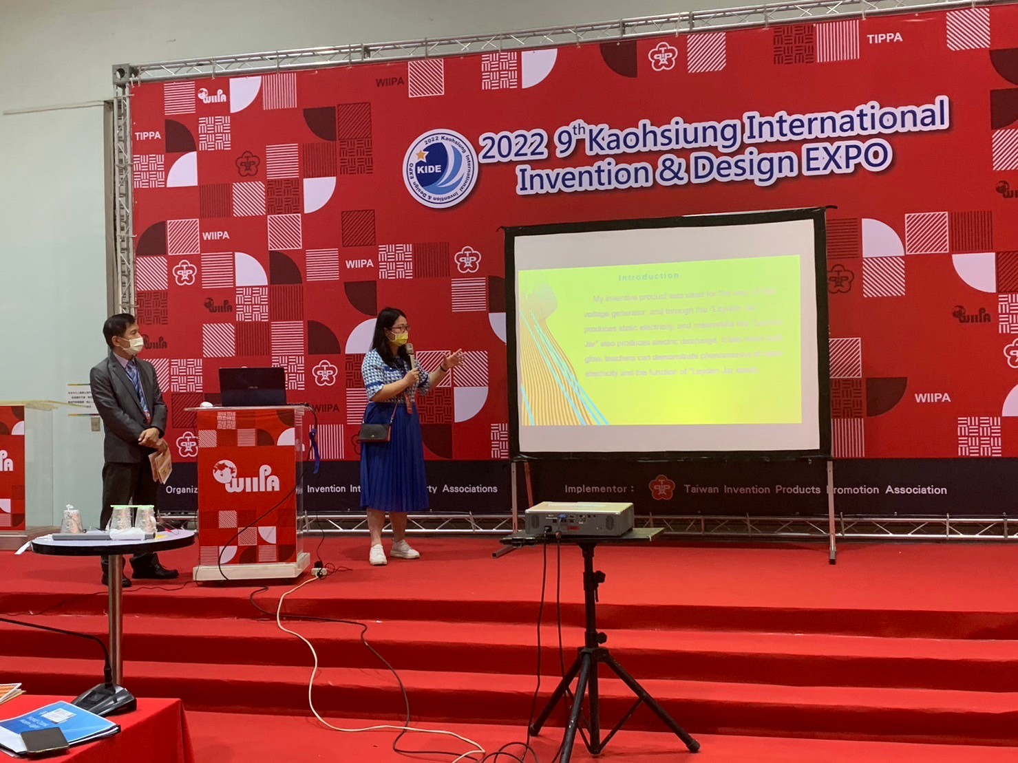 敏實科技大學謝義鄉與鄭伊玲老師,12月2日參加2022高雄KIDE國際發明暨設計展,在32個國家眾多作品中,以「靜電存放演示裝置」(Static Storage Demonstration Device)為題,以生活實用性技壓國際隊伍,獲國際評審青睞而勇奪金牌殊榮,展現敏實科大卓越創新與研發能力。該校董事長秦榮華先生,在世界各國設有70家電動車電池製造廠,未來此項技術將持續研發,結合產業連應用在電動車的備用電池裝置中。