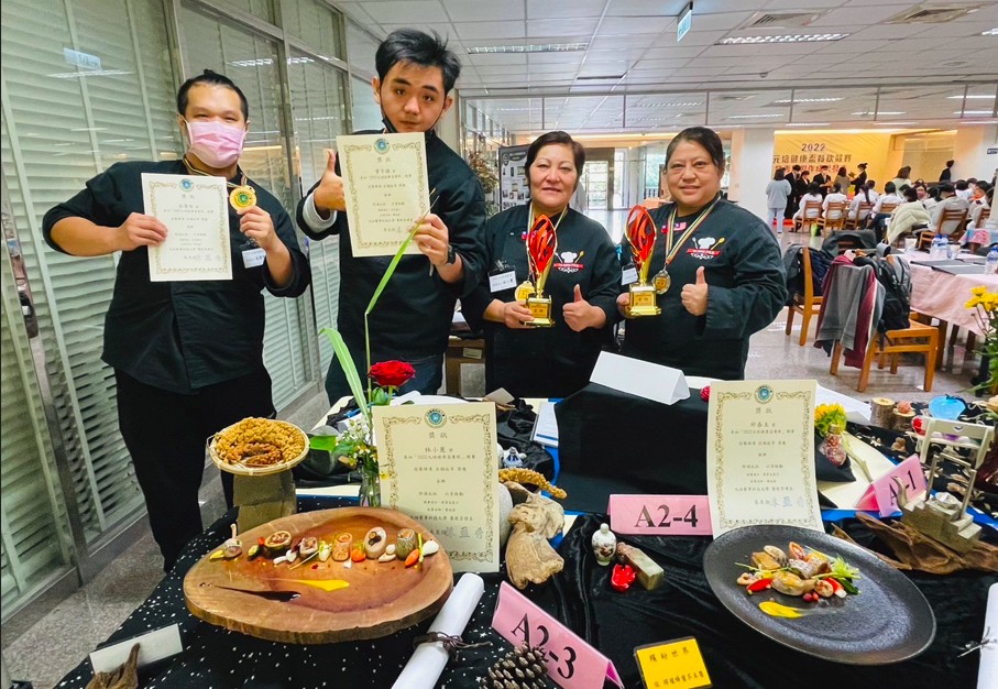 本次參賽由曹瑞朋老師精心指導學生,尤其是選用各種在地天然食材,透過菜色變化,結合健康餐飲目標,創造出令人食指大動的健康美食成果,最終獲得2金2銀的好成績。林小麗參加菜餚展示的前菜展示榮獲「金牌」,邱春玉前菜展示榮獲「銀牌」,彭聖智参加菜餚展示的主菜展示榮獲「金牌」,曾宇揚在主菜展示榮獲「銀牌」的殊榮。