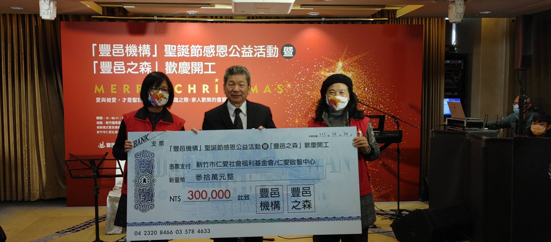 豐邑機構今日(12/24)舉辦「聖誕節感恩公益活動」暨「豐邑之森」歡慶開工,有別於在建案基地的動土大典,豐邑以「愛與分享」為主題,用愛心捐贈共敘「豐邑之森」開工之樂。